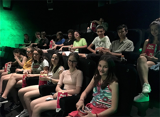 Le lezioni sono finite alle 15:30 così abbiamo avuto il tempo per andare al lido dove c’era sia il lago che la piscina. Ci siamo divertiti molto, soprattutto sugli scivoli, saltare dai trampolini, ma anche nelle piscine. Alle 18:30, dopo esserci cambiati siamo tornati al Palacinema per cenare. Alle 20:35 siamo potuti andare al cinema, dove abbiamo potuto scegliere se guardare “Aladdin” o “Rocketman” (i film venivano proiettati in contemporanea). Tutti hanno guardato il film di Alladin eccetto la maestra Elisa e Filippo. Il film di Aladdin è stato molto divertente. Era un musical con delle scene molto coinvolgenti e interessanti basate sulla storia originale della Disney. Invece il film di Rocketman è stato molto toccante. Esso illustra come ha vissuto Elton John. Il film era triste, però si vede come il musicista ha raggiunto il successo.