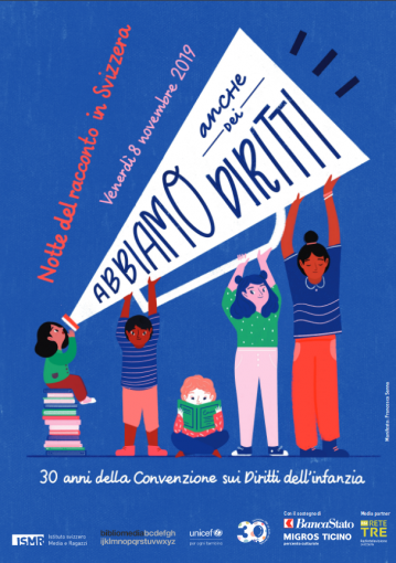 Anche l’Istituto svizzero Media e Ragazzi e la Fondazione Bibliomedia Svizzera desiderano dare il loro contributo e pertanto hanno pensato di dedicare la Notte del racconto 2019, il cui partner è Unicef, ai diritti dei bambini.