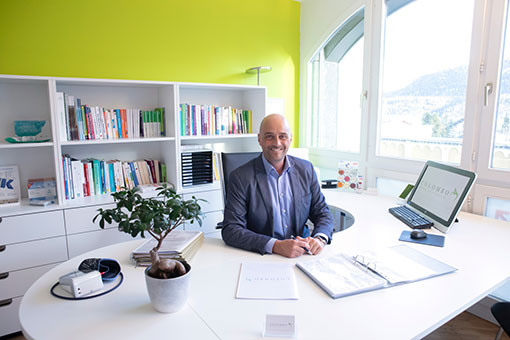 Mirko Colombo riceve nel suo ufficio a Pontresina ma anche a Poschiavo, Lugano e Zurigo.