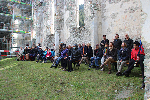 Il pubblico ha applaudito il batterista, percussionista e artista Julian Sartorius, che ha suonato in vari ambienti dell’edificio. Albina Cereghetti si è soffermata sull’importanza di questi interventi. «Queste rovine, con l’ospizio adiacente, rappresentano l’unico esempio di chiesa gotica della Val Bregaglia e si tratta di un monumento di importanza cantonale e nazionale - ha spiegato -. Con quest’attenzione si vuole valorizzare il patrimonio storico-culturale della valle. Le attività proseguiranno quest’anno e nel 2021. Dopo una prima fase con il restauro della navata e la posa di un tettuccio protettivo, si è proseguito con una parte del coro. L’intervento verrà ultimato l’anno prossimo. Poi si effettueranno delle ricerche stratigrafiche sul pavimento per vedere se si riescono a trovare delle costruzioni antecedenti all’edificazione della chiesa attuale».