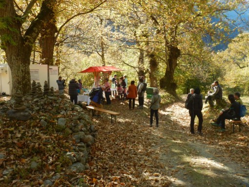 La passeggiata culinaria formata da sette postazioni ha certamente fatto conoscere, o riconoscere, a tutti i partecipanti – uomini e donne, giovani e meno giovani – le delizie della Val Bregaglia. “Fate una gita nel castagneto e scoprite i nostri prodotti naturali come yogurt, formaggio, frutta, miele, sciroppo, caldarroste e salsicce” è stato il motto del noto castagneto tra Castasegna e Soglio.