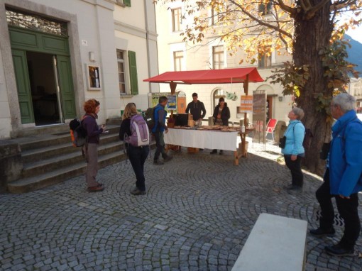 Bregaglia Engadin Turismo ha invogliato il centinaio di partecipanti con invitanti slogan: “Gustate la birra di castagna e il vino, una vellutata di zucca o di castagne; e come piatto principale castagne cotte con pancetta e panna montata, la specialità bregagliotta per eccellenza. E il dessert? Torta alla castagna con un buon caffè. Fortunatamente fra una portata e l´altra si possono fare due passi. Bun apetit!“. E ha rappresentato appieno la vasta gamma di prodotti bregagliotti presenti in valle.