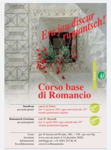 A voi la scelta di uno o dell’altro corso – o di entrambi – che potrete seguire comodamente da casa vostra, tramite piattaforma digitale. L’auspicio è riuscire a valorizzare la diversità linguistica, sinonimo di ricchezza culturale e permettere di avvicinare ulteriormente le realtà che compongono il trilinguismo grigione.
