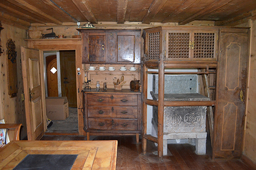 All’interno destano impressione la suddivisione degli spazi risalente all’epoca della costruzione, i pavimenti in pietra e in ciottoli, i rivestimenti, la cantina con soffitto a volta e la cucina con focolare aperto e canna fumaria.