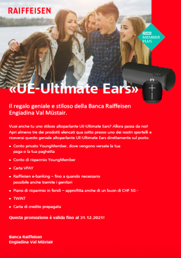 Il regalo della Banca Raiffeisen Engiadina Val Müstair per i suoi nuovi giovani clienti. Non fateveli sfuggire!