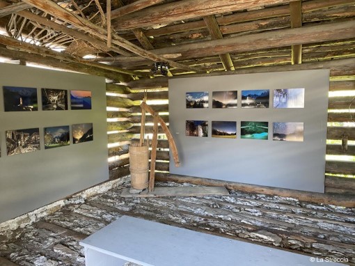 Notte a Soglio. Questo il titolo della mostra fotografica aperta per tutta l’estate al piano superiore della fucina nella via Streccia a Soglio.