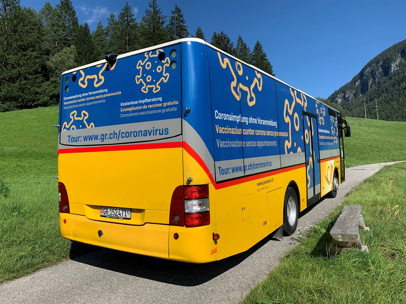 Chi desidera vaccinarsi deve portare con sé la propria tessera di cassa malati nonché la carta d’identità o il passaporto. Dopo un colloquio preliminare con un membro del personale medico potrà farsi vaccinare direttamente in loco. Nei Grigioni il bus destinato alle vaccinazioni, un autopostale trasformato, viene gestito dai Comuni in collaborazione con AutoPostale SA.
