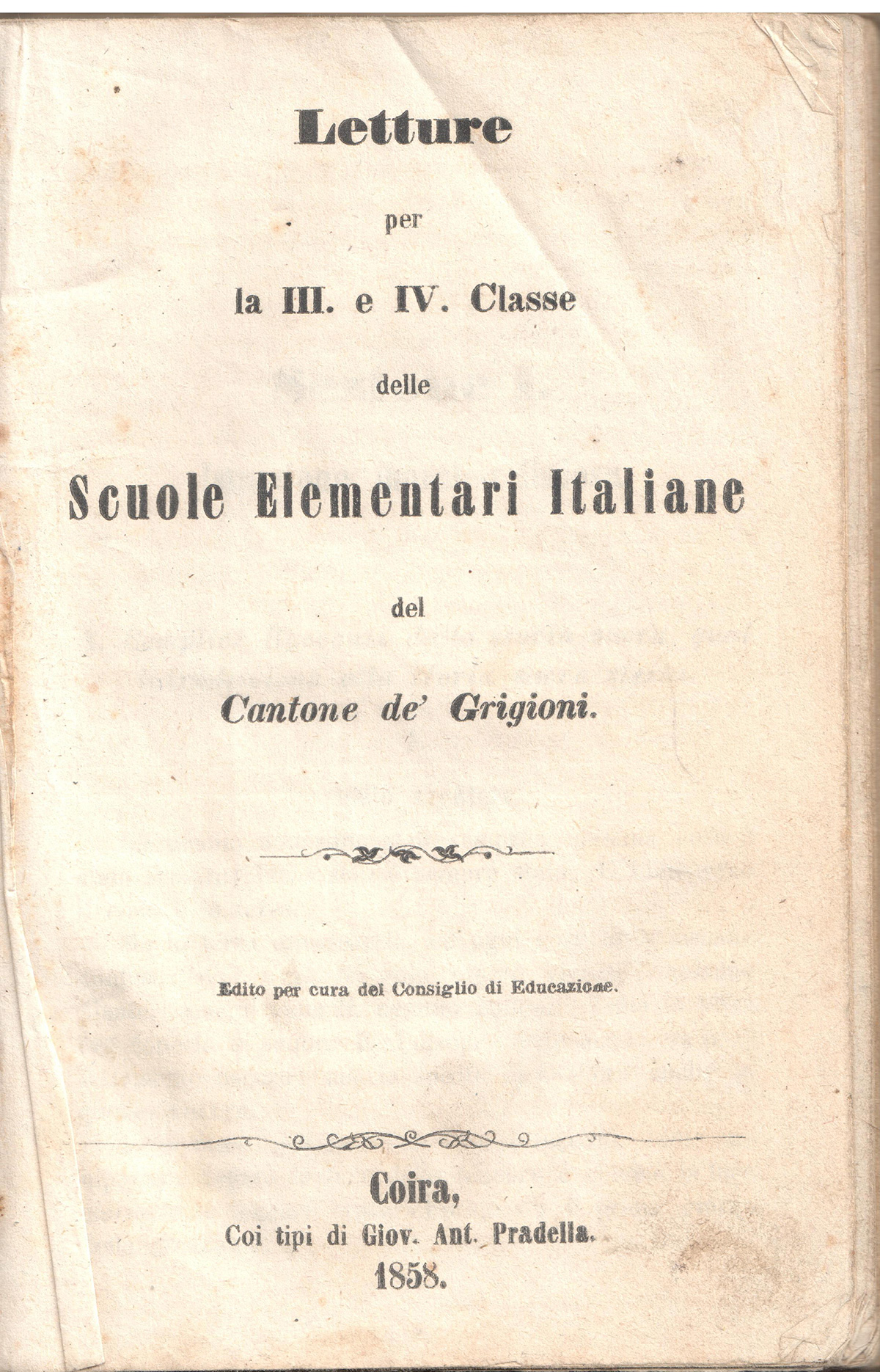Tratto da: Letture per la III. E IV. Classe delle Scuole Elementari Italiane del Cantone de’ Grigioni
