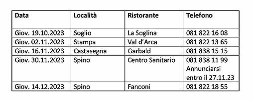 Qui sotto sono indicate le date da ottobre a dicembre 2023 quelle dell’inverno e primavera 2024 seguiranno