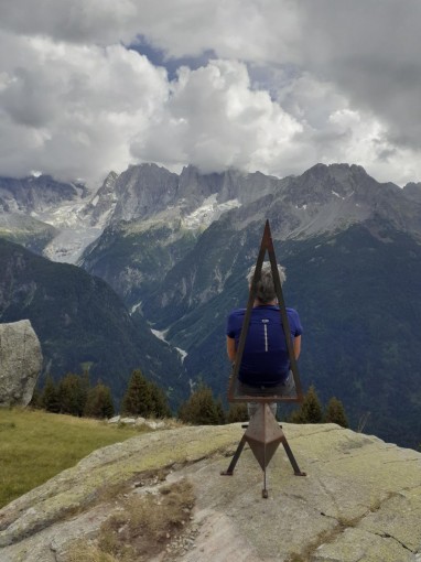… ed abbiamo trovato una splendida sorpresa… A Plan Vest c’era una sedia… che io prima avevo scambiato per un pluviometro…e poi quando l’ho scoperta… ho capito… era fatta apposta per ammirare il Badile!!! belli comodi in posizione invidiabile… E qui ho fatto la foto a mia moglie.