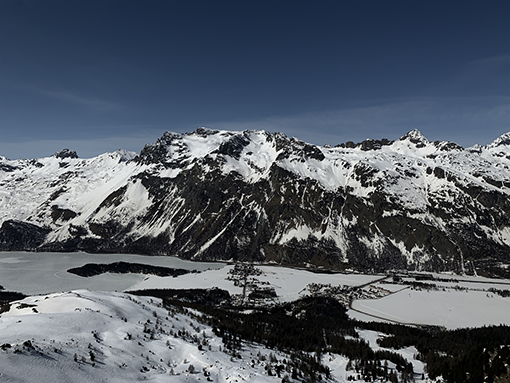 Vista panoramica sull'area interessata dal progetto intorno al Piz Lagrev e sul suo canale valangario esposto a sud/sud-est