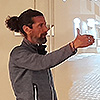 Andrea Tognina introduce la serata con la traduzione simultanea in tedesco fatta da Antonio Galli, al quale bisogna fare un particolare plauso per la capacità di tradurre dall’italiano al tedesco tutto ciò che Marco Emanuele Tosi legge dal suo libro e dice. In effetti parla molto definendosi un gran chiacchierone.