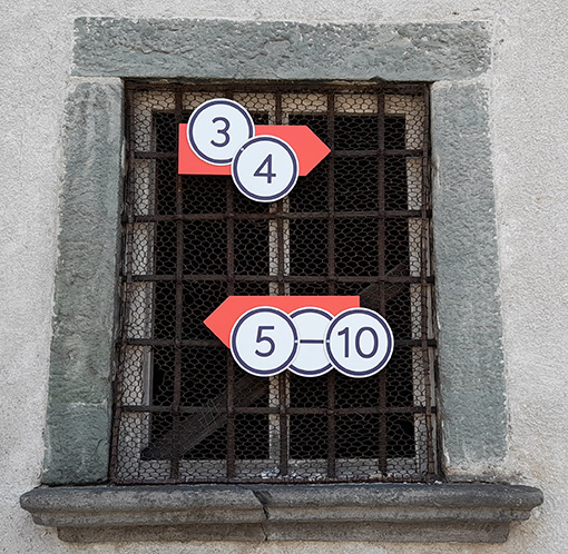 Le opere dei 12 artisti chiamati ad esprimere la loro arte in valle sono disseminate per il villaggio e per questo motivo ci sono dei cerchi con dei numeri dentro. A volte qualche numero si ripete, per esempio perché una giovane artista, Zoé Cornelius, vincitrice del concorso “Wildcard” espone nelle fontane del paese. La sua opera d’arte è composta di foto adagiate sul fondo di tutte le fontane e per una fontana c’è una cosa in più da scoprire.