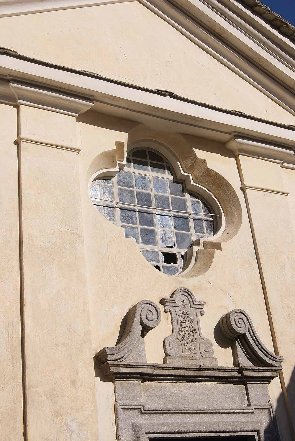 La grandinata di lunedì 25 luglio 2022 non ha solo rovinato molti orti di Sottoporta, ma ha anche danneggiato la vetrata della chiesa di San Lorenzo a Soglio. |