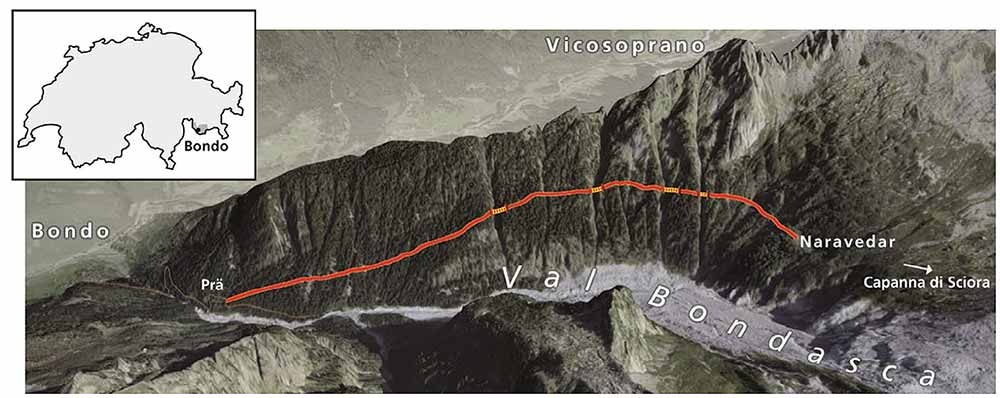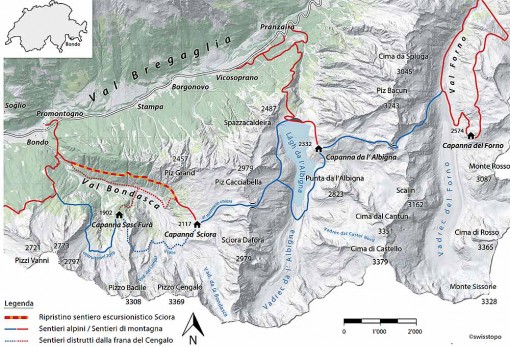 Dopo i grandi sforzi del Comune di Bregaglia per la ricostruzione del paese di Bondo, la realizzazione di misure di protezione e di infrastrutture idriche, il Comune vuole ripristinare anche la rete di sentieri escursionistici. L’obiettivo è di restituire al territorio l’attrattività che aveva un tempo per escursionisti e scalatori. L’accesso da Bondo alla Capanna Sciora diventerà il fulcro del progetto.
