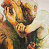 Altri gruppi di opere si concentrano sulle astruse contorsioni del corpo alla disperata ricerca del sonno ristoratore. Posizioni del corpo insolite e situazioni bizzarre hanno sempre affascinato l’artista che, accogliendo la sfida, approda a composizioni pittoriche sempre nuove, il che vale anche per le figure d’ombra immobili. Nell’incontro e nell’interazione diretta tra uomo e animale, invece, l’artista affronta il tema dell’affinità interiore, della devozione e della sottomissione.
