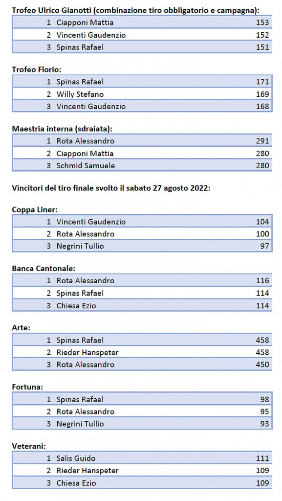 Vincitori di tiri svoltosi durante la stagione 2022.