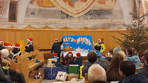 Si poteva assistere a piccoli spettacoli o al caldo della chiesa di San Martino o al fresco in un prato innevato. E tappa dopo tappa si sono potute conoscere le diversissime tradizioni natalizie.