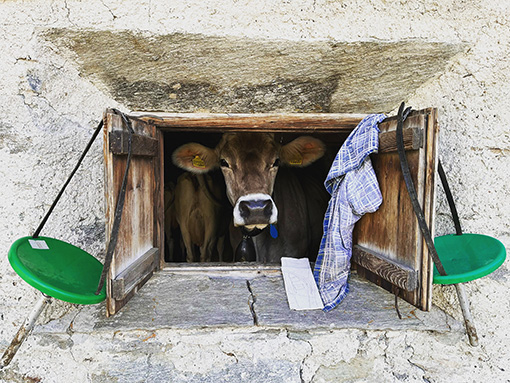Usa fieno che raccoglie tra Vicosoprano e Casaccia e fornisce con il suo latte la Latteria Bregaglia, per yogurt e formaggi.