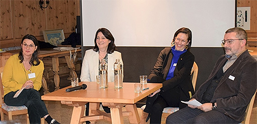 Barbara Wülser, Ufficio di coordinamento per le pari opportunità, consigliera nazionale Anna Giacometti, sindaca Nora Saratz Cazin, Alberto Palaia, servizio specializzato per il plurilinguismo (da sinistra).