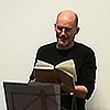 A distanza di tempo, questi stessi testi migrano, cambiano auditorio, contesto: l’attore li legge nello studio fotografico di Soglio, in una sala piena e divertita, alla presenza dell’autore che ascolta quindi parole che non suonano più nel suo idioma, cui l’assenza di punteggiatura ha fatto prendere nuove sfumature e che probabilmente da malinconiche son diventate ironiche o da riflessive si son fatte surreali.