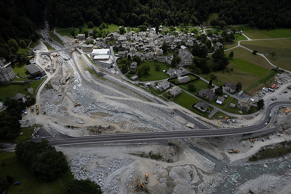 I lavori di ricostruzione e di messa in sicurezza sono iniziati nell’autunno 2021 e si sono focalizzati sulla protezione dalle alluvioni nelle zone più a rischio del fiume Mera (Maira), fra Bondo e Spino, e sull’interramento dei cavi dell’alta tensione. Tra il 2017 e il 2021 le attività si erano concentrate sulla colata detritica e il relativo spostamento del materiale.