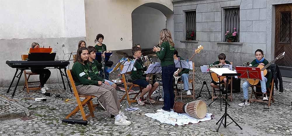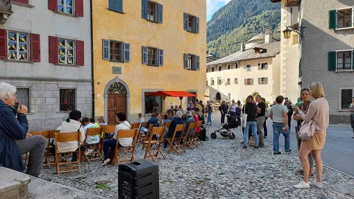 Il sindaco chiude il suo breve discorso dando spazio alla giovane orchestra Quelli del venerdì composta da ragazzi dagli 8 ai 13 anni, guidata dalla maestra Laura Lodigiani e che fa capo alla Scuola di Musica della Bregaglia. Oggi la loro esibizione è stata particolarmente ben riuscita forse perché prima di suonare i ragazzi così come tutto il pubblico presente avevano gustato lo sciroppo ai fiori di castagno, torta di castagne e biscotti alle castagne gentilmente offerto da Bregaglia Engadin Turismo.