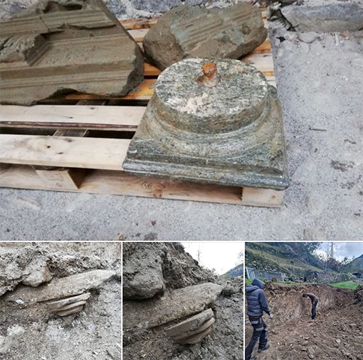 Lo scorso anno sono stati scoperti elementi architettonici, tra cui una colonna decorata in pietra e elementi in arenaria scolpita, risalenti a un edificio rinascimentale dei secoli XVI-XVII, sepolti dalla frana del 1618.