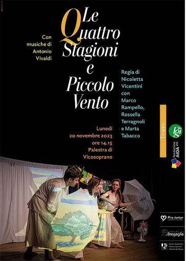 Quest’anno la Pgi Bregaglia collaborerà con la Fondazione AIDA, da anni impegnata nella produzione di spettacoli teatrali per le scuole. Lo spettacolo scelto si intitola “Quattro stagioni e Piccolo Vento”. Una storia in cui l’amore per la natura si mescola alla musica, più precisamente quella del grande compositore barocco Antonio Vivaldi.