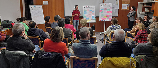 I tre gruppi sono stati sollecitati a rispondere ad alcune domande: Cosa significa per te salute? Cosa associ con salute e la Bregaglia? Quali offerte per la promozione della salute dovrebbero essere proposte? Come possono essere combinate le offerte sanitarie e di alloggio?