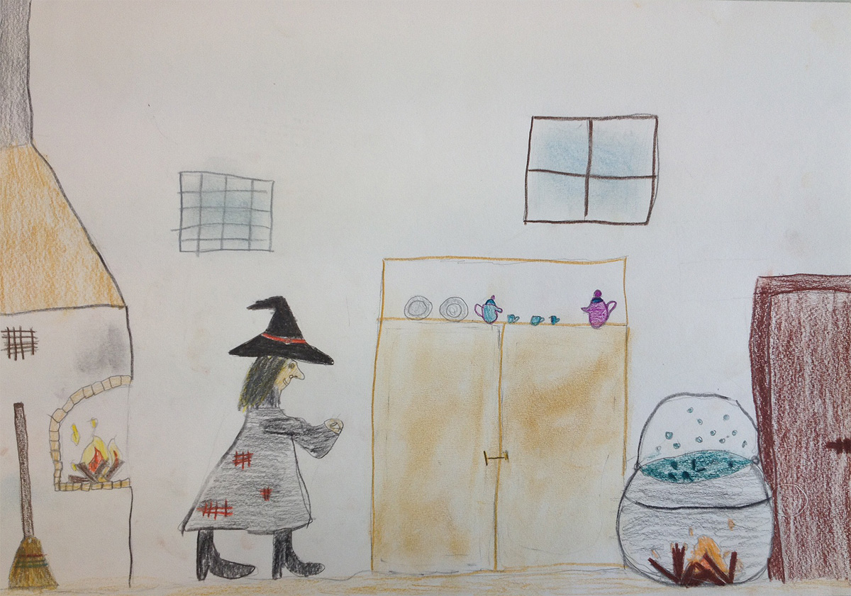 C’era una volta una strega che aveva bisogno di castagne per una *pozione, che avrebbe fatto crescere anche a Vico le castagne. La strega andò a Bondo a prendere le castagne. Provò a fare la pozione e funzionò. Piantò la castagna, arrivò a casa e aspettò il mattino. Arrivò il mattino, uscì di casa, andò a vedere. Era troppo freddo, allora crebbe un’altra pianta che gli abitanti di Vico chiamarono pino. Così nacque il pino in tutta la Valle Bregaglia.