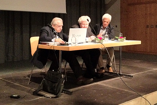 Giovedì, 24 maggio. Tavola rotonda a Bondo, “Il ritorno alla grammatica: nuovi modelli per la riflessione grammaticale”. Da sinistra: Prof. Francesco Sabatini, Prof. Michele Prandi, Prof. Sandro Bianconi.