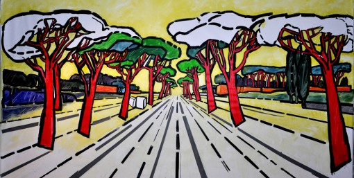 I suoi disegni dai colori lievi eseguiti sul posto nel suo atelier si trasformano in fantasie di forte espressività.
