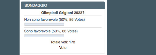 La popolazione, abbastanza numerosa alla serata, è in parte indecisa e in parte divisa, come emerge anche dalle interviste trasmesse dalla radio e dalla televisione (vedi sotto). Da parte nostra, come sito labregaglia, abbiamo chiuso ieri sera martedì 27 novembre il sondaggio fra gli utenti. Attivo per 12 giorni , è terminato esattamente in parità, come si può vedere dall’illustrazione.
