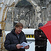 Nonstante il tempo non proprio primaverile sono state ben 30 le persone che si sono date appuntamento in un freddo e nevoso sabato mattina presso la fermata dell’autopostale di Maloja. Dopo il benvenuto da parte del direttore di Bregaglia Engadin Turismo, Michael Kirchner i partecipanti hanno cominciato il tuor sotto la sapiente guida della dottoressa Mirella Carbone e del marito Joachim Jung. Una coppia di guide ben assortita che ha dimostrato di conoscere bene sia la storia che le peculiarità artistiche della Val Bregaglia.