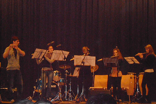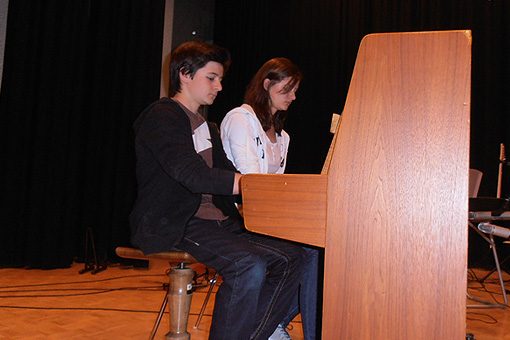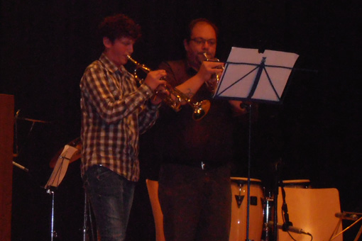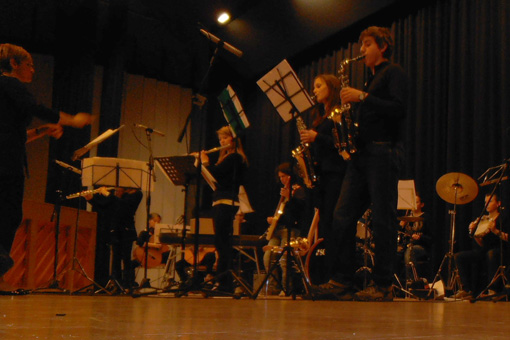 Introdotti dal “presentatore d’eccezione”, come è stato definito Andrea Crüzer, sono saliti sul palco, a gruppi o singolarmente, tanti bambini/e e ragazzi/e, ognuno col suo strumento – o più strumenti – oppure in qualità di ballerine. Flauti, pianoforte, tromba, saxofono, chitarra, percussioni… E fuori programma l’esibizione a sorpresa di un gruppo spontaneo, senza nome, che ha portato una propria canzone.