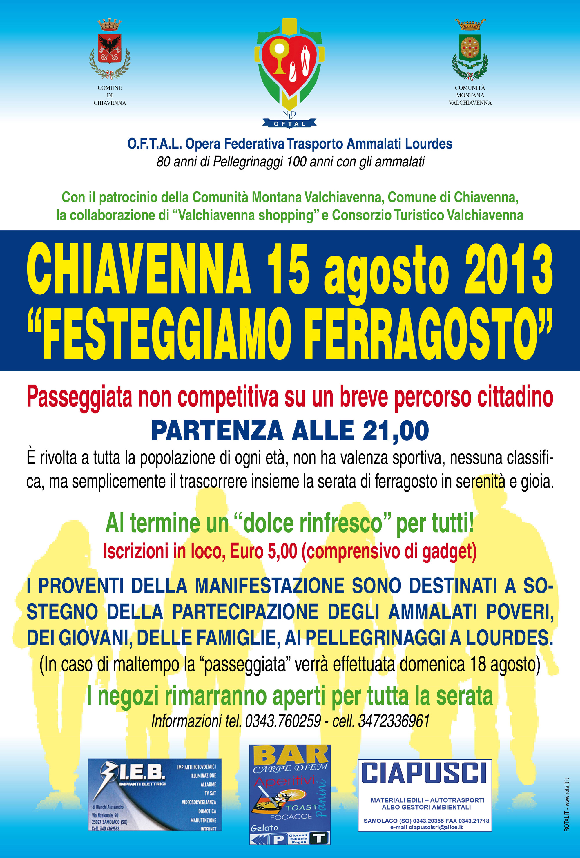 A Chiavenna, giovedì 15 agosto 2013. Passeggiata non competitiva su breve percorso cittadino. Scarica la locandina.