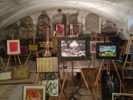 Si avvicendano nella Rimessa, accanto al Palazzo Castelmur a Coltura, gli artisti che espongono. Attualmente è la volta di Tinetta, una milanese trapiantata a Maloja.