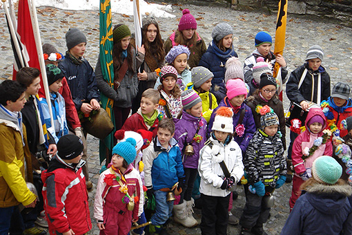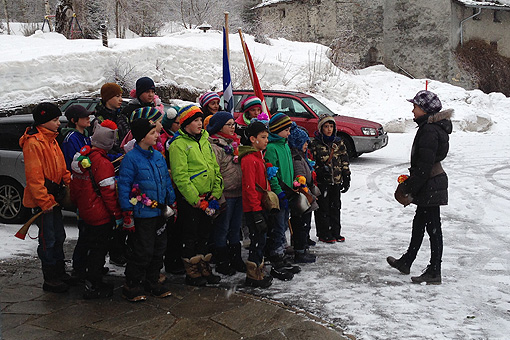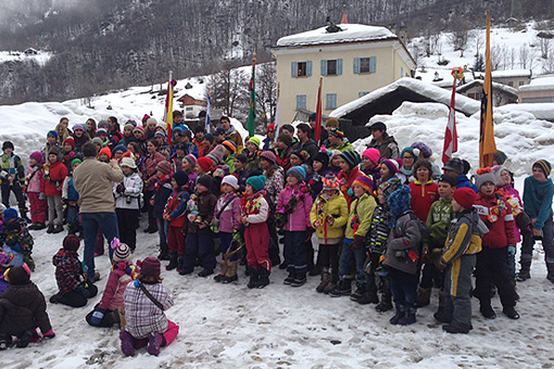 Calendimarzo sotto la neve, l’inverno è ormai lieve. Iniziati i cortei e canti in Valle Bregaglia. Alcune immagini.