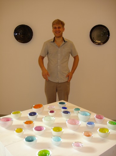 Jonas Niedermann, che lavora anche su richiesta, sta svolgendo una pratica da soffiatore di vetro come assistente dell’artigiano Cornelius Réer e nel tempo libero concessogli crea i suoi oggetti nell’officina di Nürnberg in Germania.
