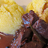 Trascorso il tempo, sgocciolate la carne e rosolatela su tutti i lati in una padella con un po’ d’olio d’oliva fino ad una doratura. Cospargete il tutto con un po’ di farina ed aggiungete il concentrato di pomodoro.