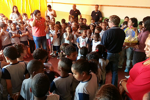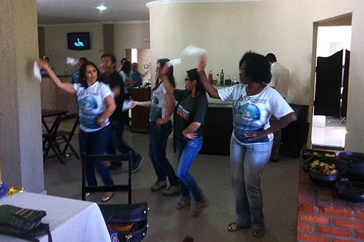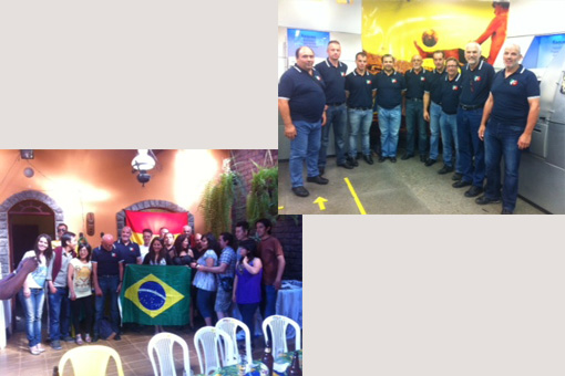 In alto: in banca a Juiz de Fora. In basso: incontro con il coro della Bolivia.