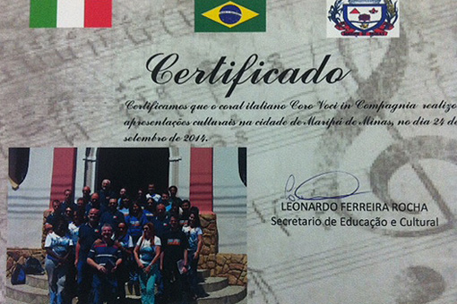 Una formazione italo-svizzera porta un po’ di Europa in Brasile. Diretto da Romeo Gianotti e David Lucchinetti il coro ad hoc “Voci in compagnia” partecipa al XX Festival Internacional de Coros Municipal Juiz de Fora.