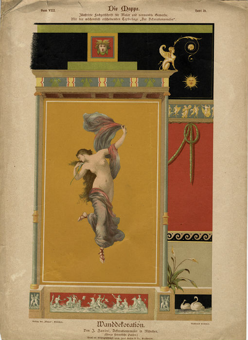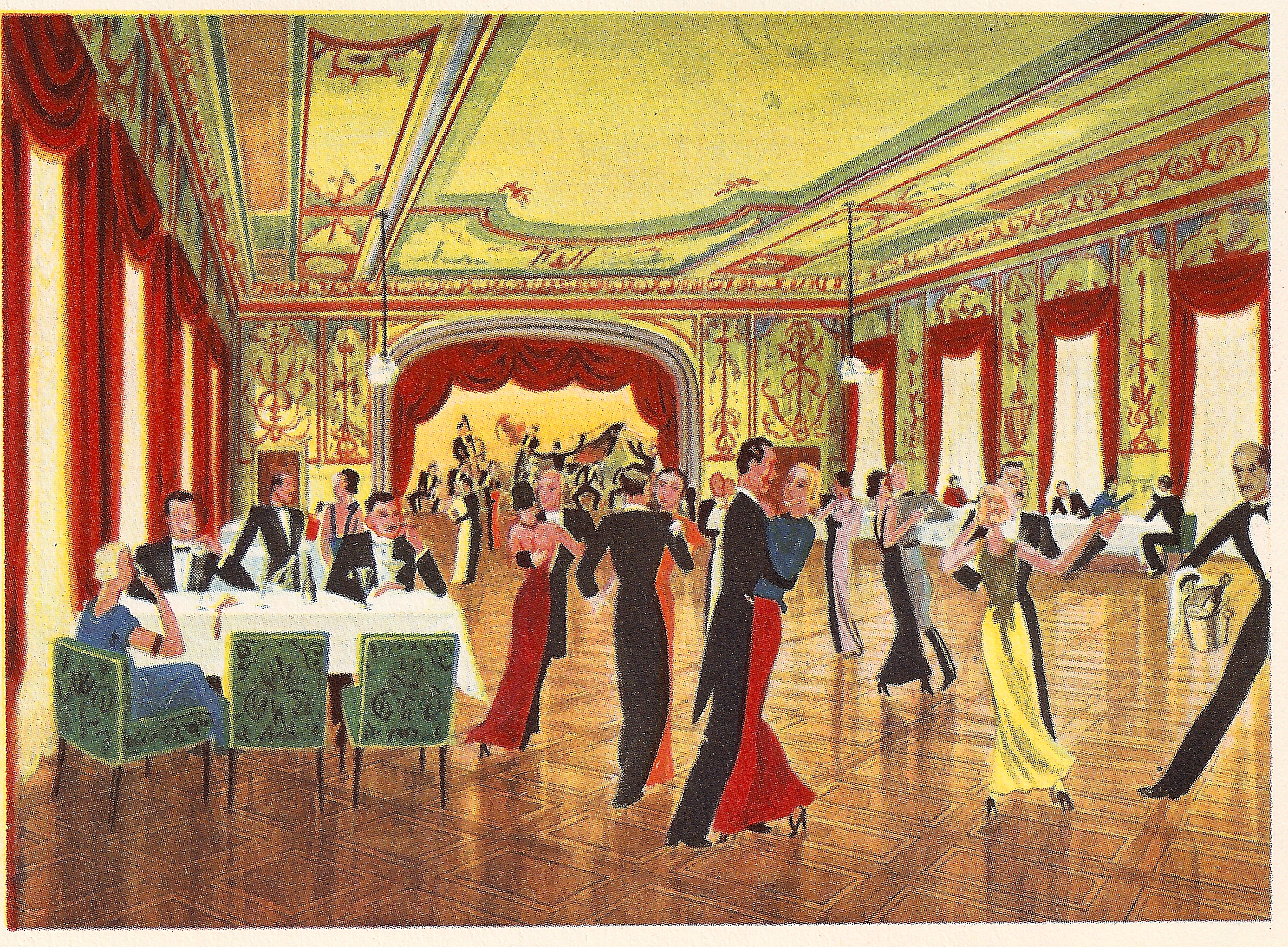 La sala da ballo del Palace con decorazioni pompeiane. Lo stile andava molto di moda negli anni dopo il 1880. L'immagine è tratta da un dépliant. Le decorazioni con l'andar del tempo sono state coperte di vernice bianca.
