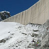 Giovedì scorso un grosso elicottero, un Super Puma, è stato utilizzato per portare a valle due valvole a farfalla da sottoporre a revisione, mentre continua, a monte, la costruzione di impalcature sul lato interno del muraglione, necessarie ai lavori di sigillatura, a 2’100 metri di altitudine.