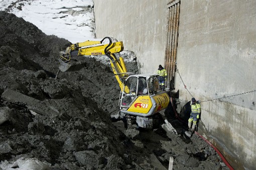 I lavori continueranno con la chiusura delle impalcature e il riscaldamento al loro interno, necessario non al lavoro degli operai, ma al decongelamento dell’acqua presente nelle fessure. Si procederà poi alla rimozione del vecchio materiale impermeabilizzante, una sorta di catrame che, decine di anni fa, era stato immesso liquido. Esso verrà staccato dal muro e dalla roccia con un getto potentissimo d’acqua, sparata a 3’000 atmosfere, che lo manderà in frantumi. Poi verrà raccolto e adeguatamente smaltito. I lavori di sigillatura sono stati affidati alla ditta Isopermaproof di Thusis, la quale utilizzerà materiali sintetici nuovi, a due componenti, che hanno la proprietà di rimanere elastici anche a temperature sotto lo zero.