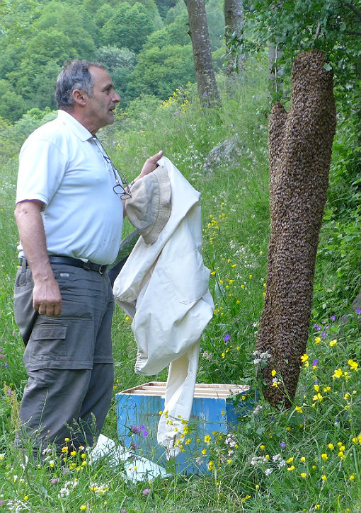 Claudio Gianotti alle prese con un enorme sciame d'api