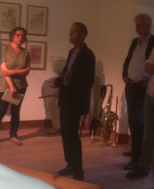 Alla Galleria Il Salice di Castasegna era fra il pubblico l’autore delle fotografie esposte, Urs Beyeler, anch’egli presente sui cantieri dell’Albigna negli anni fra il 1955 e il ’60. Particolarmente suggestiva la fotografia che rappresenta Emil Zbinden davanti a un cavalletto, mentre lavora a uno dei disegni che si possono ora osservare alla Ciäsa Granda.