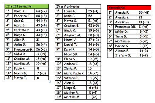 Per ogni partecipante un piccolo premio in ricordo del concorso a cui ha partecipato. I primi a scegliere ovviamente i vincitori delle singole categorie: Paolo, Laura e Alessia P. Un piccolo premio è andato anche agli autori delle schede più belle: Pietro, Alex ed Elena. Altri sono stati estratti a sorte.
