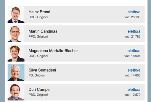 Risultati definitivi delle elezioni del Consiglio nazionale del 18 ottobre 2015 nei Grigioni.